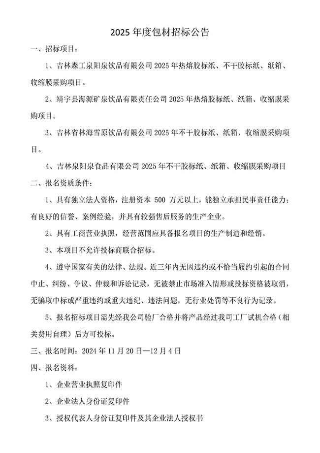 2025年度包材招標(biāo)公告